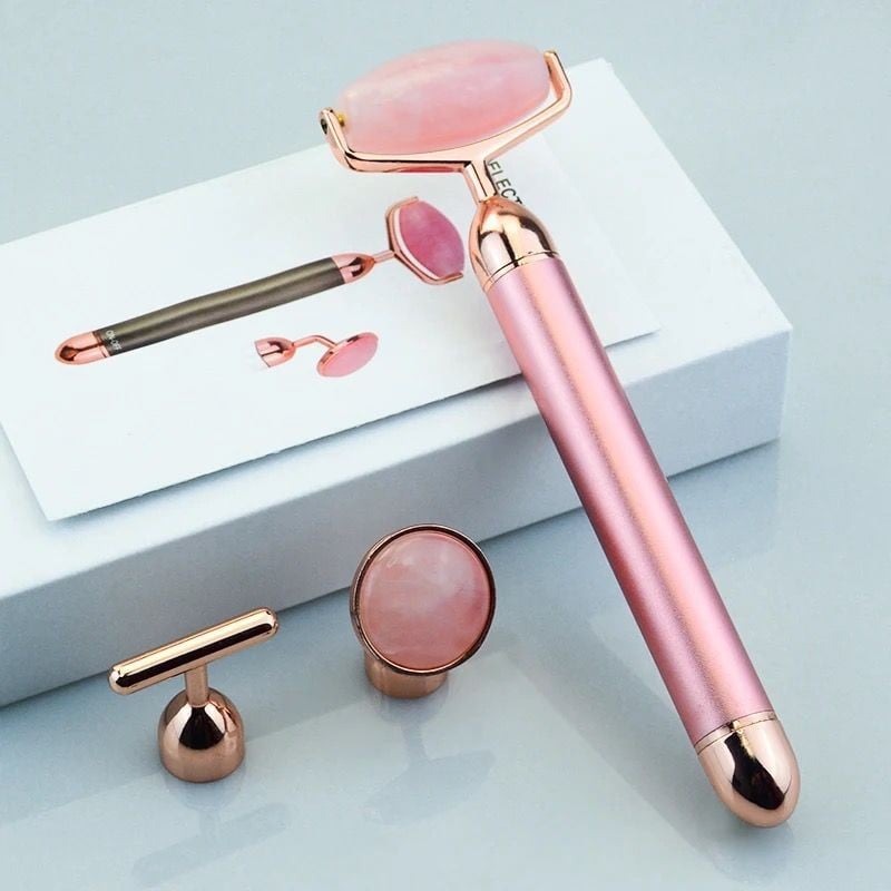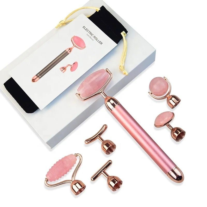 بكج مكون من ست قطع من حجر الكوارتز الوردي الطبيعي لتدليك الوجة والرقبة مع اهتزاز،يساعد التدليك المنتظم للبشرة باستخدام الجواشا على تحريك الدورة الدموية،وشد البشرة ،وسرعة امتصاص سيرومات العناية